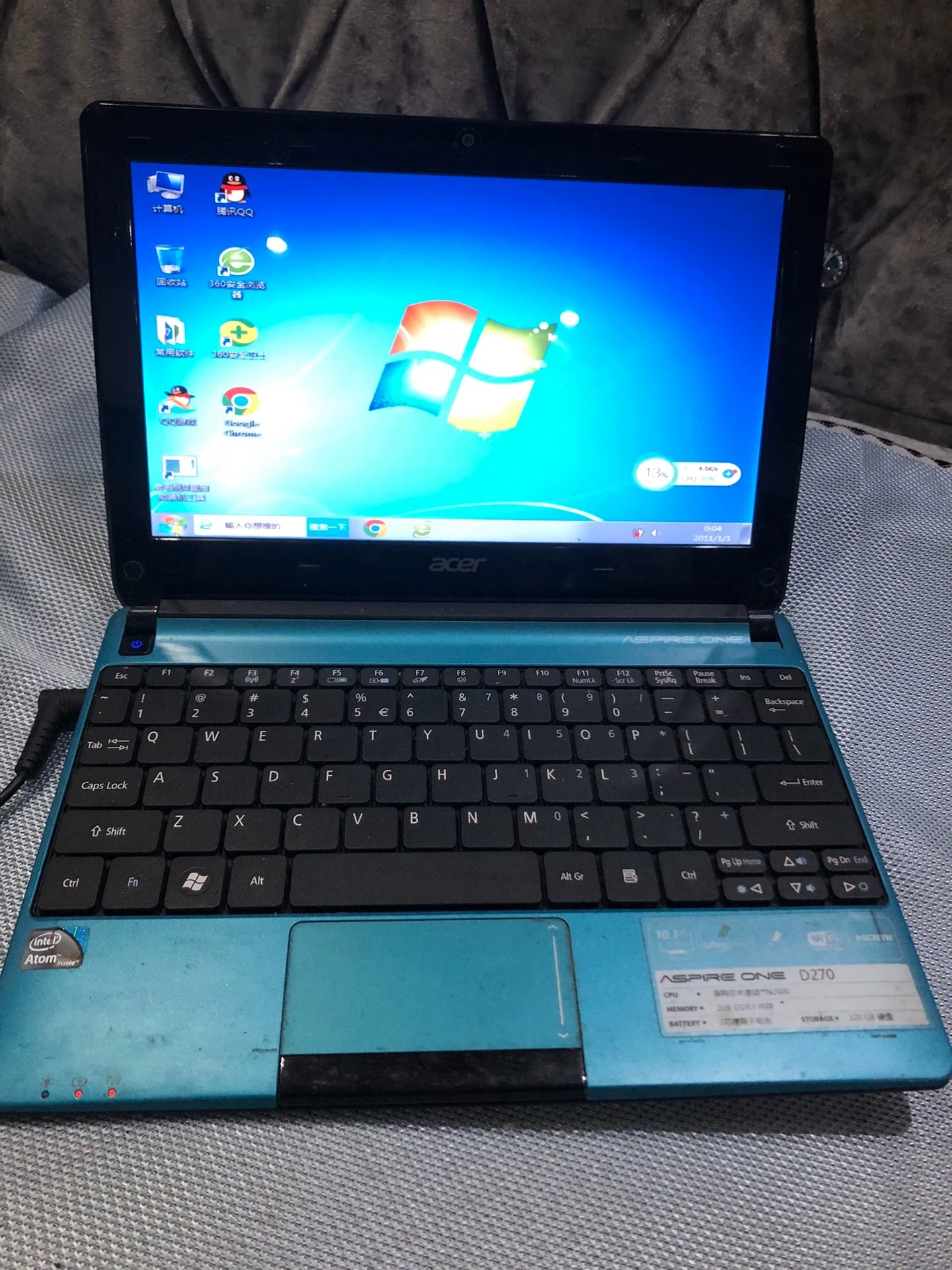 宏基AcerAspreOneD270便携式笔记本,上网本,英特尔n2600处理器,2g运行内存,320g机械硬盘。电池不耐用,带原装电源。整体成色较差,参考图